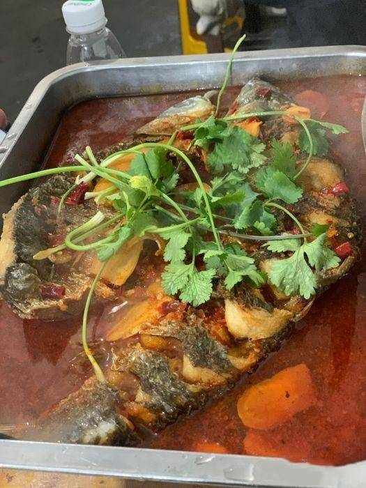 当然他家还有辣的烤鱼,喜欢吃的辣朋友就可以点这道菜,吃完还可以加粉丝和豆腐、青菜一起煮,很是韵味。