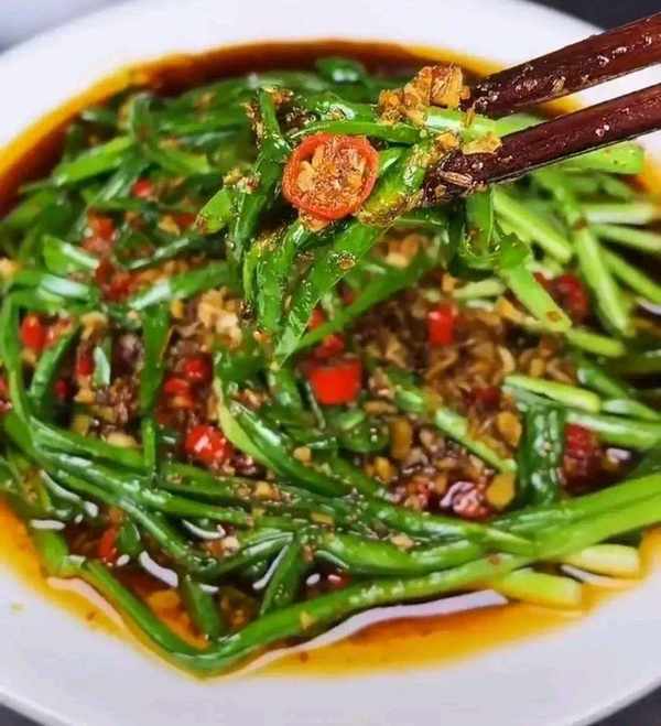 凉拌韭菜,春天吃韭菜对身体好,所以特意点了这一道凉菜,辣中透着麻油的香味,吃起来这个季节的韭菜正好,鲜嫩的。