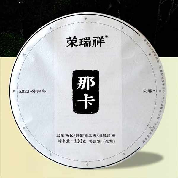 2023年那卡,精挑勐宋茶区头春采摘的一芽一、二叶乔木大叶种茶青为原料,荣瑞祥越陈越香技艺制作。