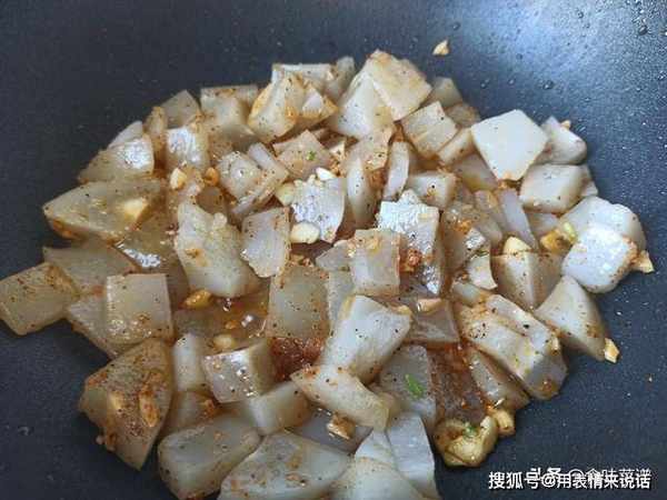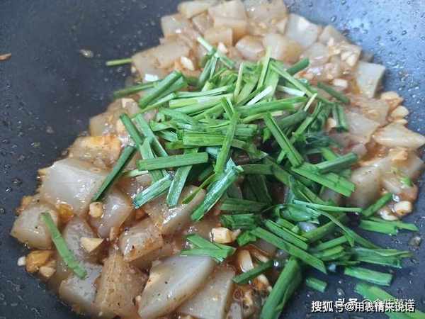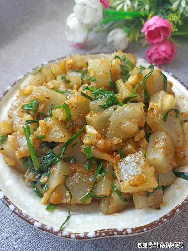 8、一道好吃的炒凉粉就做好了,特别的筋道、嫩滑,真的很好吃,想吃口感黏一些,可延长烹炒的时间,感觉自己学晚了。