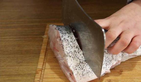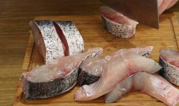 做法:先将花鲢鱼的后面一部分切成小段,如果觉得太大的可以再切小一点。