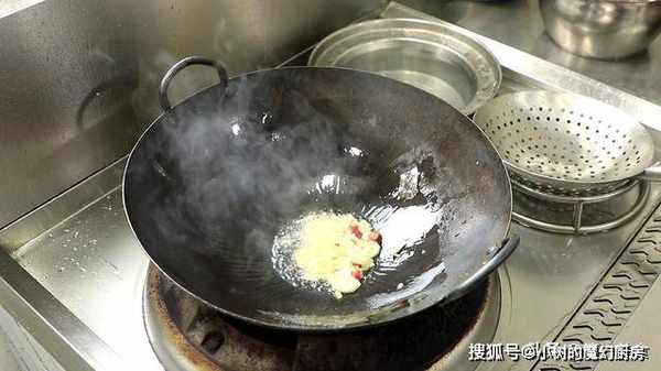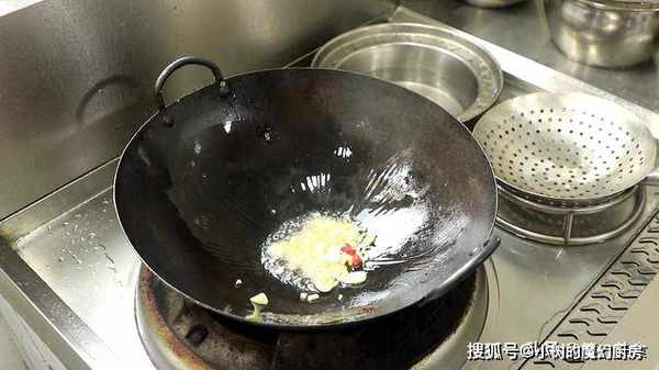 食材全部准备好,锅内烧油,油热以后倒入葱姜蒜小米椒爆香。