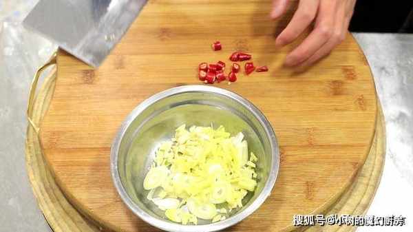 大蒜几粒切成蒜片再剁成蒜末。大葱白一段切成马蹄片。生姜一块切成姜粒。小米椒两粒切成小米椒圈。