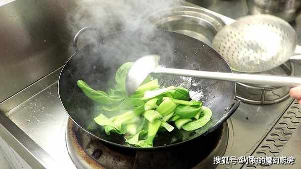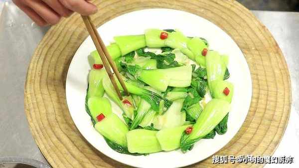 加入食盐1克,炒至青菜断生,倒出后摆盘,让这道菜更有卖相。