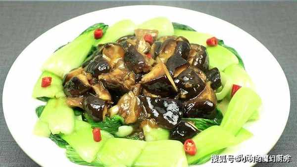 ,水淀粉能使调料和食材更好的融合香菇更入味,起锅前淋上一点明油提亮一下颜色,就可以起锅装盘,最好把香菇倒在青菜上面,盘子中间好看有食欲。