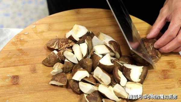 香菇几朵去一下根,用清水清洗干净,把香菇切成四半,切小点容易入味。