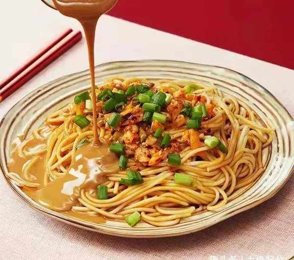 担担面鲜红,开胃。一碗酱汁浓面,在冬菜和辣椒酱的加持下,咸咸微辣,比肉还香,堪称川味中的极品。