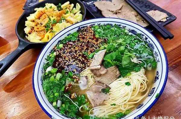 兰州拉面汤清,肉香,面条爽滑。红润的辣椒油和大葱、香菜漂浮在汤汁上,让人食欲大开。刚拉出来的面条紧实爽滑,喝一口,全身的细胞都被唤醒,好爽快!