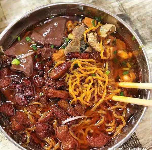 肥肠软糯,猪血嫩滑,面条筋道,筋道。这就是一碗合格的昌王面的标准,吃的就是这个。