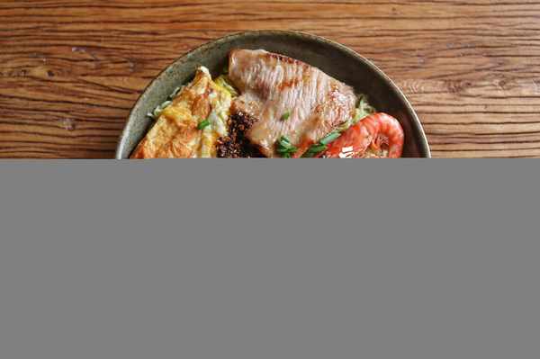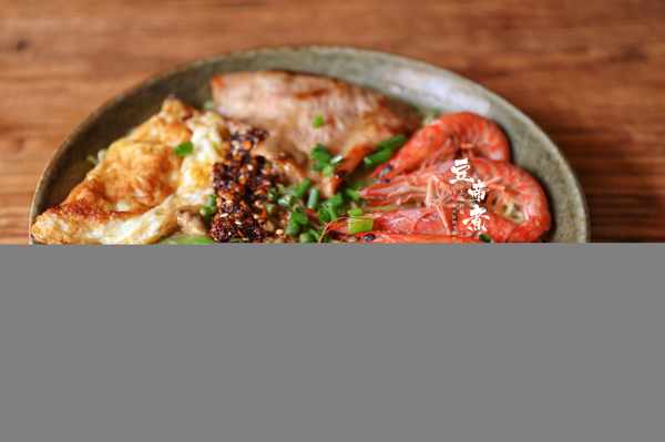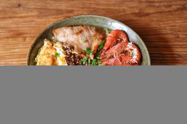 材料:方便面1袋、颈肉1块、生菜4片、鲜虾5只、鸡蛋1个、油辣椒1勺、葱花1撮