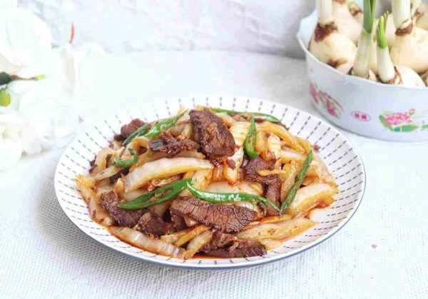 一切就绪后,就可以开始准备做饭了。锅中倒入适量食用油。锅内油热后,放入切好的牛肉,开小火,将牛肉稍微翻炒几下,至牛肉浮出水面。轻微泛黄;