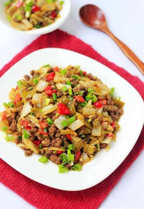【用料】:白菜400克,蚝油适量,盐适量,腊牛肉200克,料酒适量,生姜10克,生抽适量,辣椒3个(随根据个人口味适当)