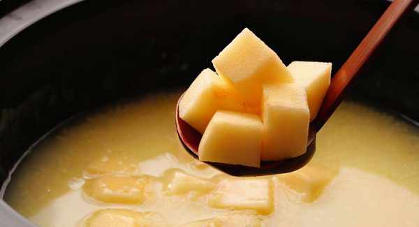3、水开后直接放入小米,用勺子翻过来。盖起来并煮沸。水烧开后,将准备好的柠檬汁滴入其中。用此法熬出的小米粥,香味浓郁,不溢锅。