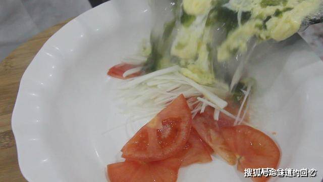 鸡蛋是很好熟的,成型后即可倒入汤盆中。蛋汤浇在薄片细丝上,有汤之熟,有菜之鲜。