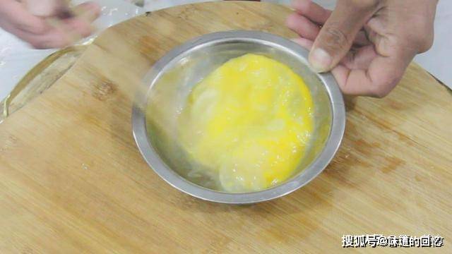 把适量紫菜泡在温水中。鸡蛋两个,用筷子或打蛋器搅碎均匀。