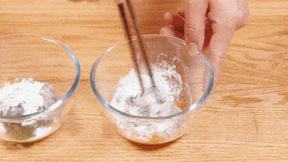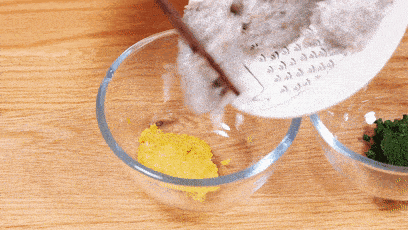 小碗中加入1/3的淀粉和适量的鲜菇粉提味。如果是给大宝宝的,可以加一点盐来调节。