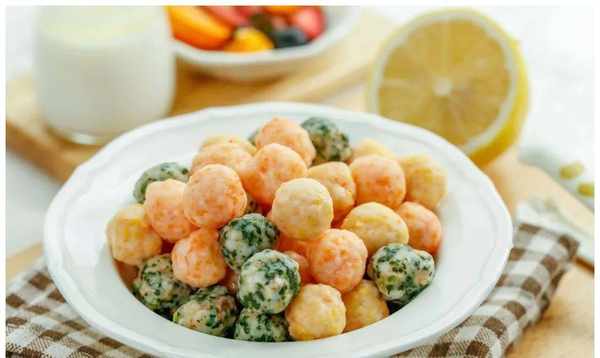 这五颜六色的蔬菜虾丸吃起来又鲜又嫩。如果再配上汤、面等,绝对不会掉链子!