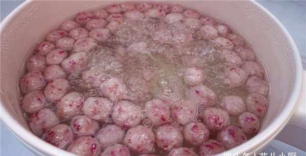 4.取一个小锅,倒入纯净水,烧开,放入小丸子。