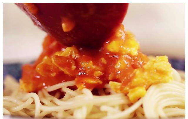 【原料】:番茄一个,鸡蛋面150克,鸡蛋两个,番茄酱两勺,甜面酱一勺,葱少许。