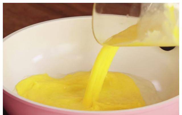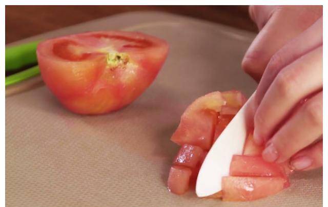 Step1:先在番茄顶部画上十字刀,然后用开水泡两分钟,取出去皮,切小块;将准备好的蛋液打碎放入碗中,将三层油直接倒入温热的油锅中,用勺子不断搅拌,直到形成块状的蛋液,备用。