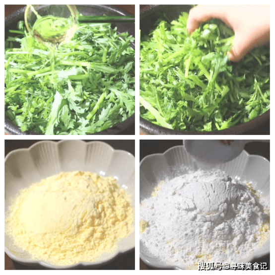 准备食材:茼蒿、玉米面粉、面粉、大蒜