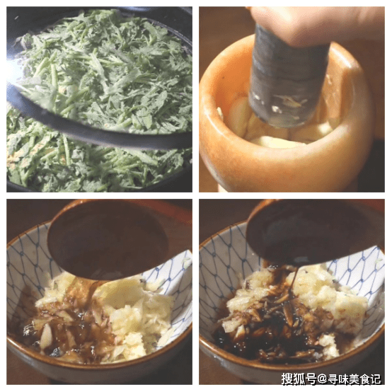 5、在这期间姜蒜怼成蒜泥,然后放入一小勺凉开水,加入香醋、辣椒油、芝麻香油和生抽搅拌均匀备用。