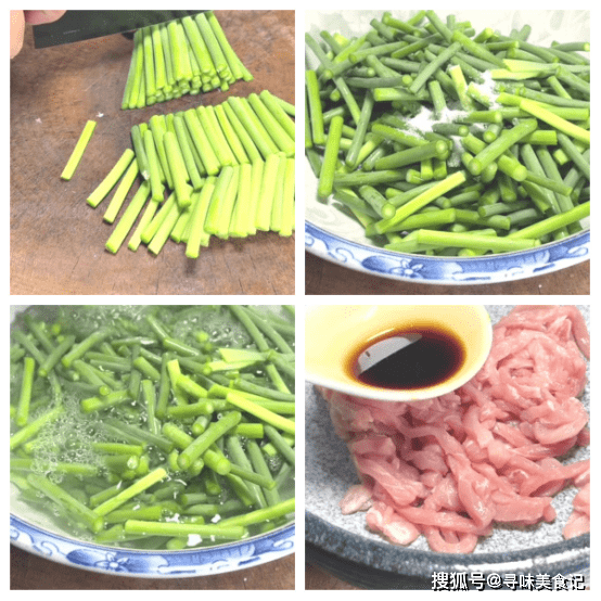 准备食材:蒜苔、猪瘦肉