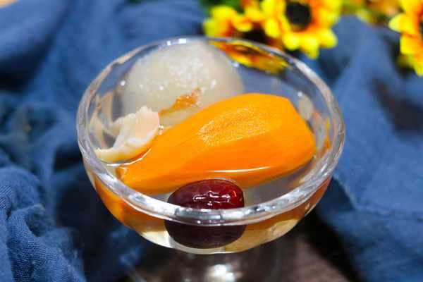 3、开始熬煮,直至完全熟透,放入少许的红枣,把它拌匀,这样一道红薯梨子汤就制作完成了。