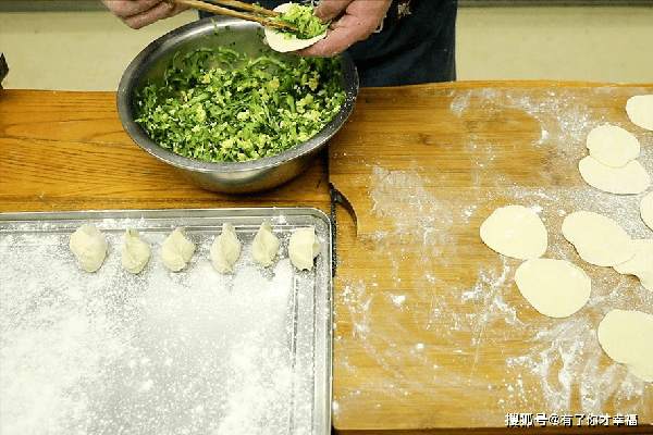7.煮饺子的时候开水下锅,经常用勺子推推,千万不要来回搅防止饺子破皮,素馅饺子比肉馅饺子容易熟,不用点水饺子全部飘起来即可出锅,美味即成。