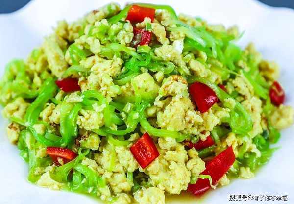 3.锅中烧油,油烧热以后放入葱花翻炒出香味,倒入莴笋丝翻炒均匀,加入蚝油5克,继续翻炒,把莴笋炒至断生后倒入鸡蛋液,从锅边淋入少许植物油,防止鸡蛋粘锅,快速搅拌让鸡蛋液均匀粘在莴笋上,鸡蛋定型以后倒入红椒粒,淋入适量的香油,翻炒均匀即可出锅,美味即成。