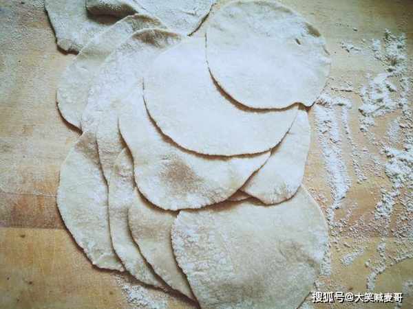 4、松弛好的面团放在案板上揉搓,搓成长条,切大小均匀的剂子,然后擀成边缘薄中间厚的圆片。
