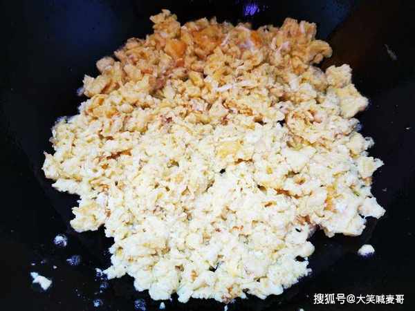 2、锅中烧油,先把鸡蛋放进去炒熟,用筷子划散。