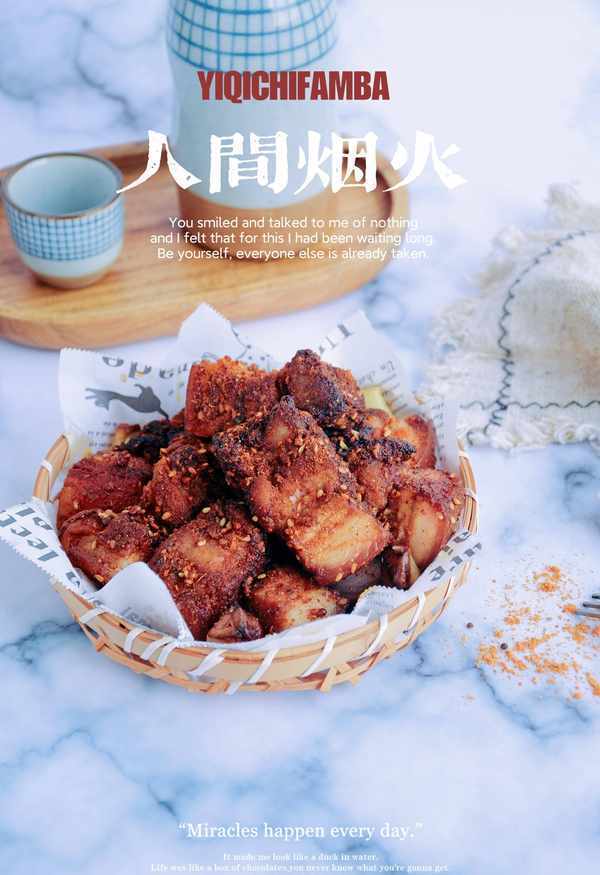 9.五花肉已经烤得直冒油,闻着太香了,忍不住尝了一块用空气炸锅做出来的香辣烤五花肉,香而不腻,瞬间感觉估计以后会常用这款空气炸锅了,因为完全没有油烟,只需要把食材清洗干净,腌制好放在炸锅里,调好时间,就可以完全不用管了,想想平时我用平底锅来烤五花肉,不知道吸了多少油烟,还得一直在灶台边守着,这个空气炸锅完全就是解放了又手。