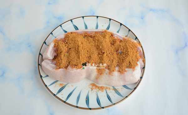 4.撒上50克香辣烧烤料,用手抹均匀;