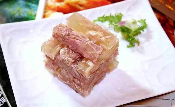 取出猪肘,剔除猪骨再放入锅中,取出调料包,放入盐、鸡精调味,再炖10分钟即可。连肘带汤一起倒入保鲜盒里,放入冰箱冷藏一夜。食用时用刀切成块放入蒜泥、醋调味即可。