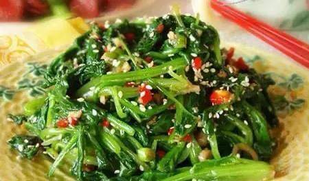 4.将烫好的菠菜捞出冲凉开水,挤干水分加入调味汁、熟白芝麻拌匀即可享用。