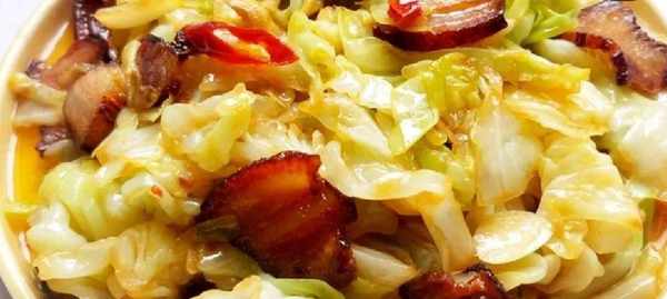 (1)包菜用手撕成小块,清洗干净,生姜切丝,大蒜切片,干辣椒切碎,锅内放清水,放入腊肉,煮出里面多的盐