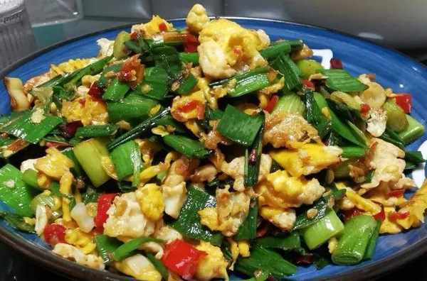 食材:蒜苗、鸡蛋、小米辣、蒜蓉剁辣椒
