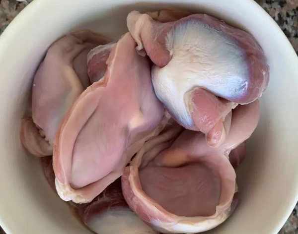 1.腌制鸭胗:切好的鸭胗放入小碗中,加入料酒、生抽抓匀腌制10分钟备用;