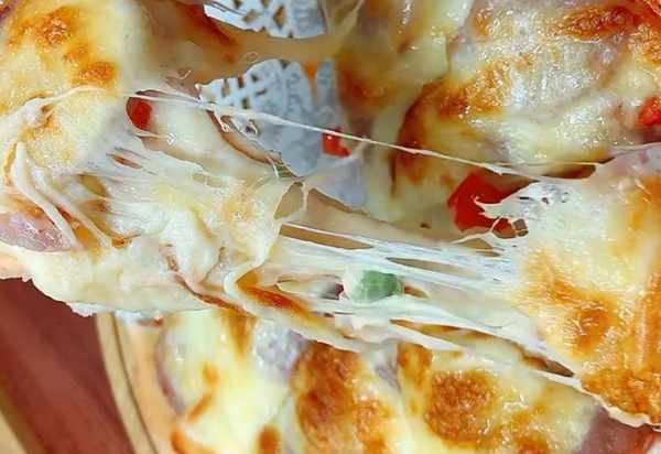 最后再撒上一层厚厚的芝士碎,放到空铁炸锅里,一百七十度烤七分钟。