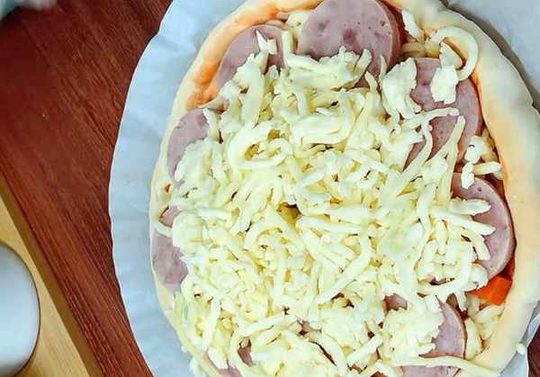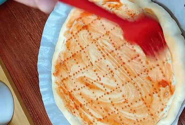 再刷一层番茄酱。芝士碎我们要提前从冰箱里拿出来,需要解冻半个小时。