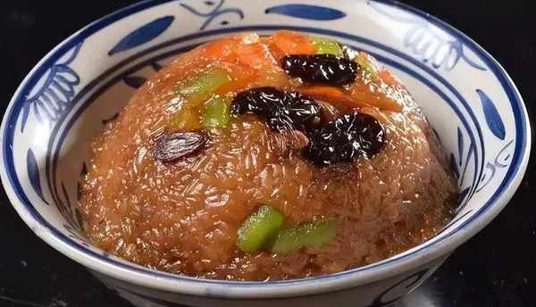 8.以糯米为主料,配红枣、莲子、桂圆肉、青红丝、玫瑰、樱桃等入菜,入口软糯香甜的八宝甜饭;