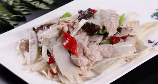 莲菜炒肉片,这道菜虽然是一道家常菜,但在陕西正宗农村酒席上吃这道菜,那真是有讲究的。莲菜炒肉片这道菜的精髓就在于选用的莲菜是陕西独有的一种“九眼莲”,现在估计很多地方也都有这种莲菜了。这道菜吃起来菜脆、肉嫩,无丝无渣,香美可口。名头响亮的莲菜炒肉片是陕西农村宴席上一道少不了的可口菜,尤其是在陕西渭南蒲城一带,更是逢席必上。