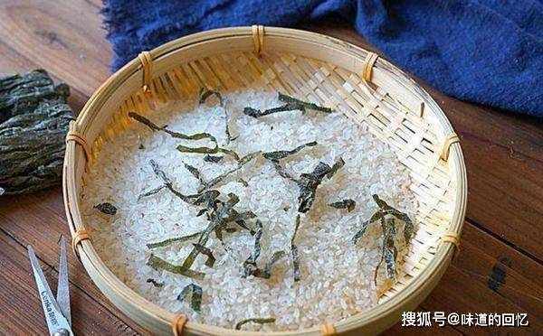 首先准备一根干海带,注意这里用的干海带是从外面市场刚买回来未经处理的干海带,一定不要清洗,不然就失去了作用。把干海带埋进存放米的米缸中,干燥的海带可以起到吸收水分的作用,从而可以抑制大米生虫。