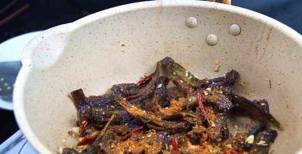 泥鳅腌制得差不多的时候,直接将碗中的大蒜生姜给挑拣出来。接下来就直接起锅烧油了,在锅中放入适量的食用油,油热后把泥鳅给一起下入到油锅中,在油锅中来回的煎制,一直将泥鳅给煎制两面金黄的时候,说明我们的泥鳅给煎制好了,直接捞出。捞出后留底油,同样的油热后,抓一把干红辣椒下到锅中,给爆出香味,翻炒一会后再把生姜末和大蒜末也一起下入到锅中翻炒1分钟,1分钟后,我们最后把煎好的泥鳅也一起下到锅中给炒制一会,下入一大勺的烧烤粉,在给翻炒均匀就可以出锅了。