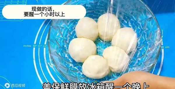 然后盖保鲜膜,放冰箱冷藏一晚上。如果要现做,就常温醒一小时以上就可以了。