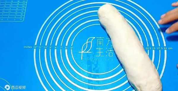 冰箱里拿出来的面团,把它用手按成长方形饼状,不用太大,醒了一晚上,面团很好按的。不容易破。延展性很好。