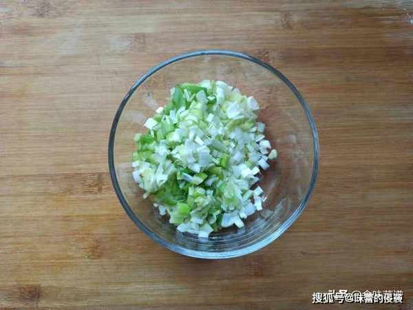 4、尽量用粗壮的大葱,味道更好一些,切成碎末。