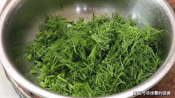 9、大家也可以将茴香菜切碎,放点蒜蓉酱进去伴着吃,超级下饭。