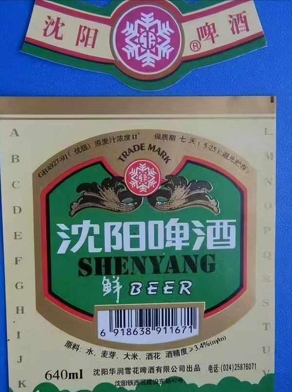 相较于高档一点的“雪花”系列,市面上更常见的是“沈阳”系列,老百姓常喝的有两种,一种是黄牌,是熟啤酒;一种是绿牌,是生啤酒。